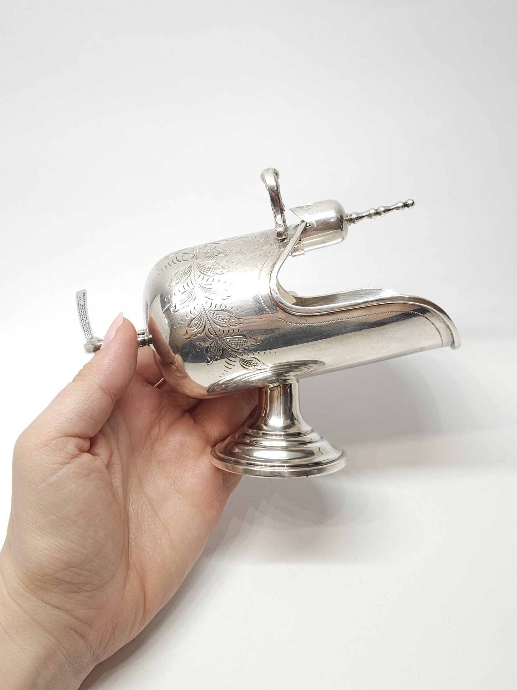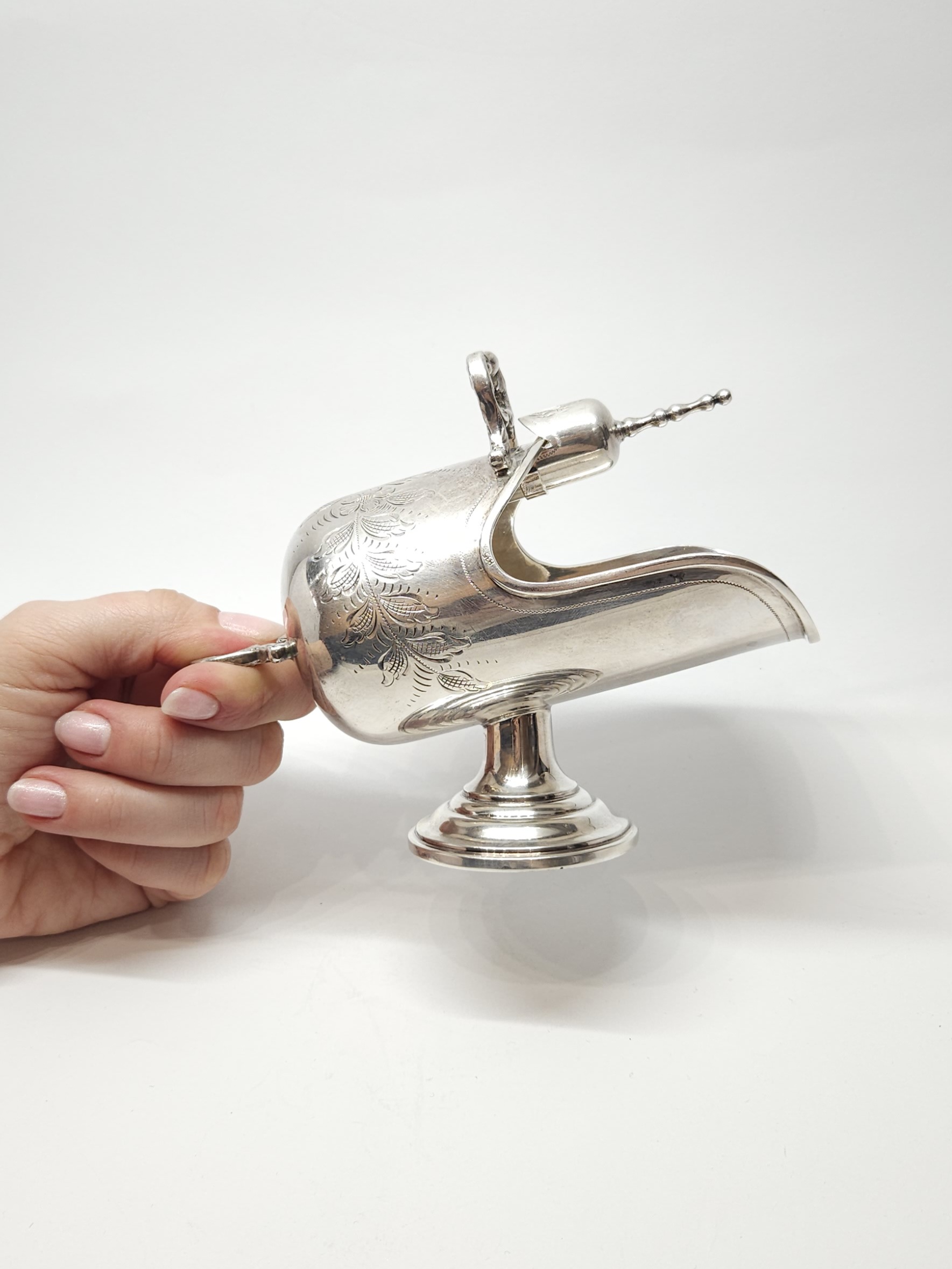 Strona główna » Sklep » Srebrna cukiernica z szufelką, węglarka, srebro 0.835 grawerowana