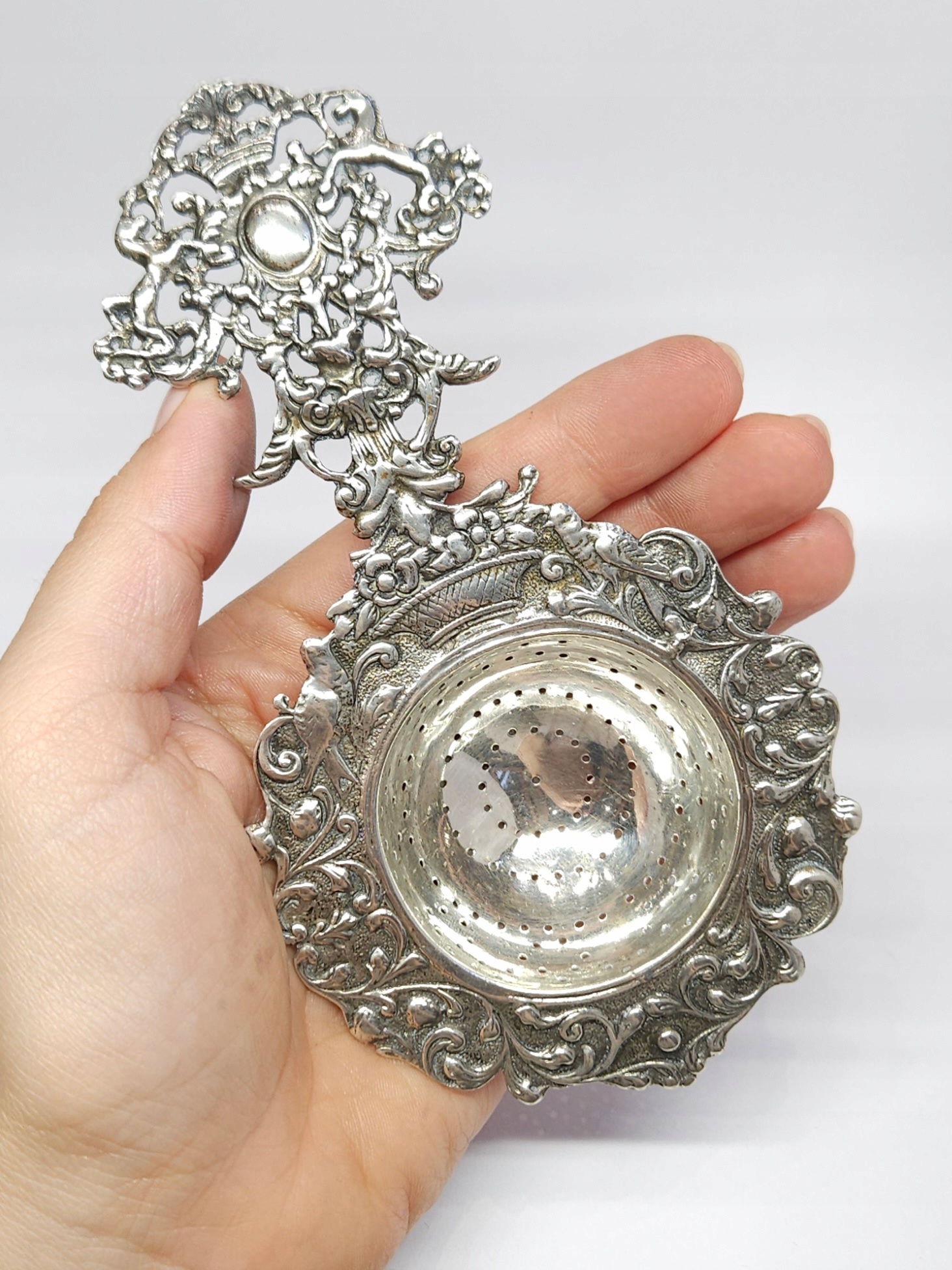 Strona główna » Sklep » Srebrne bogato zdobione sitko, srebro pr. 0,800 ażurowa oprawa III