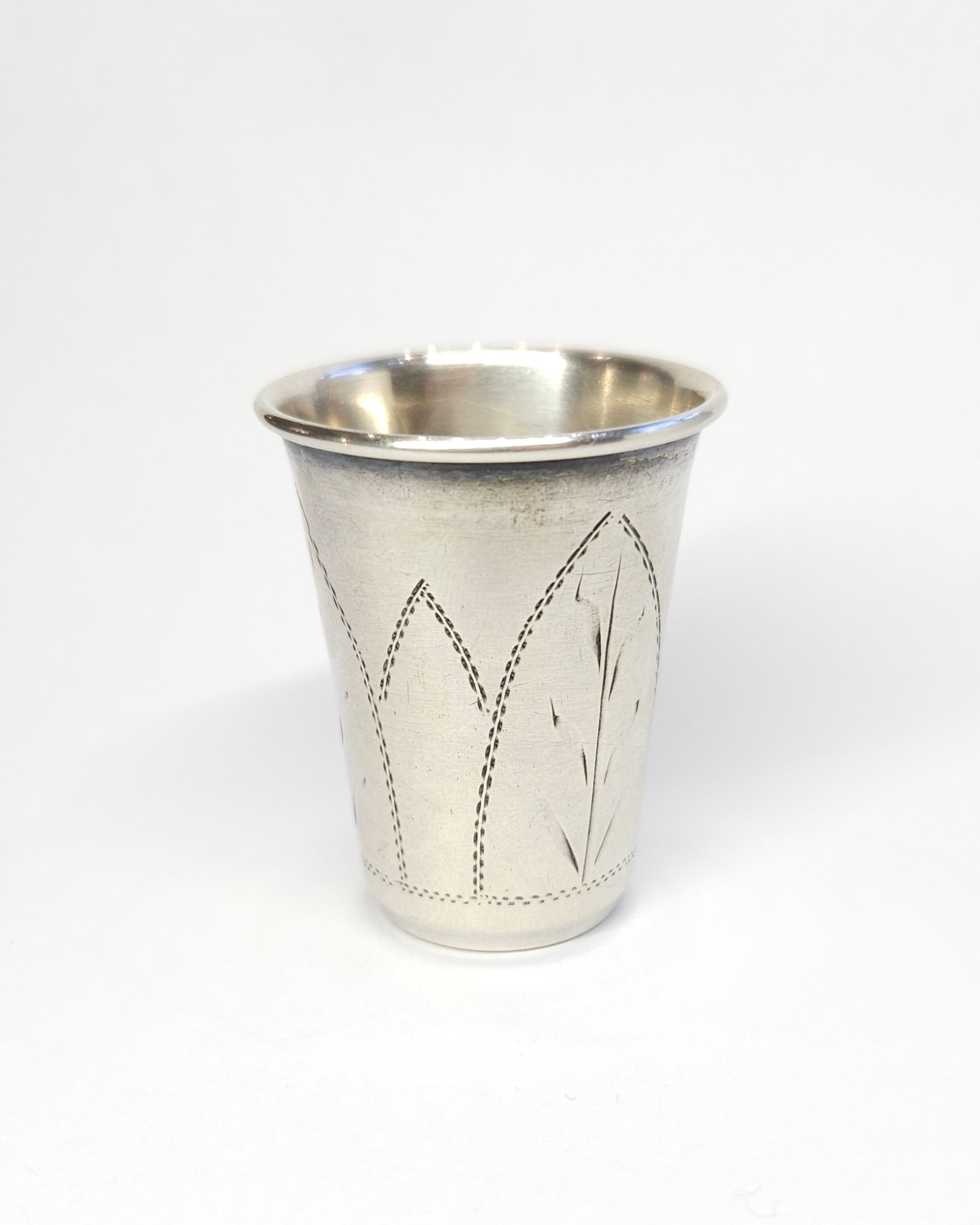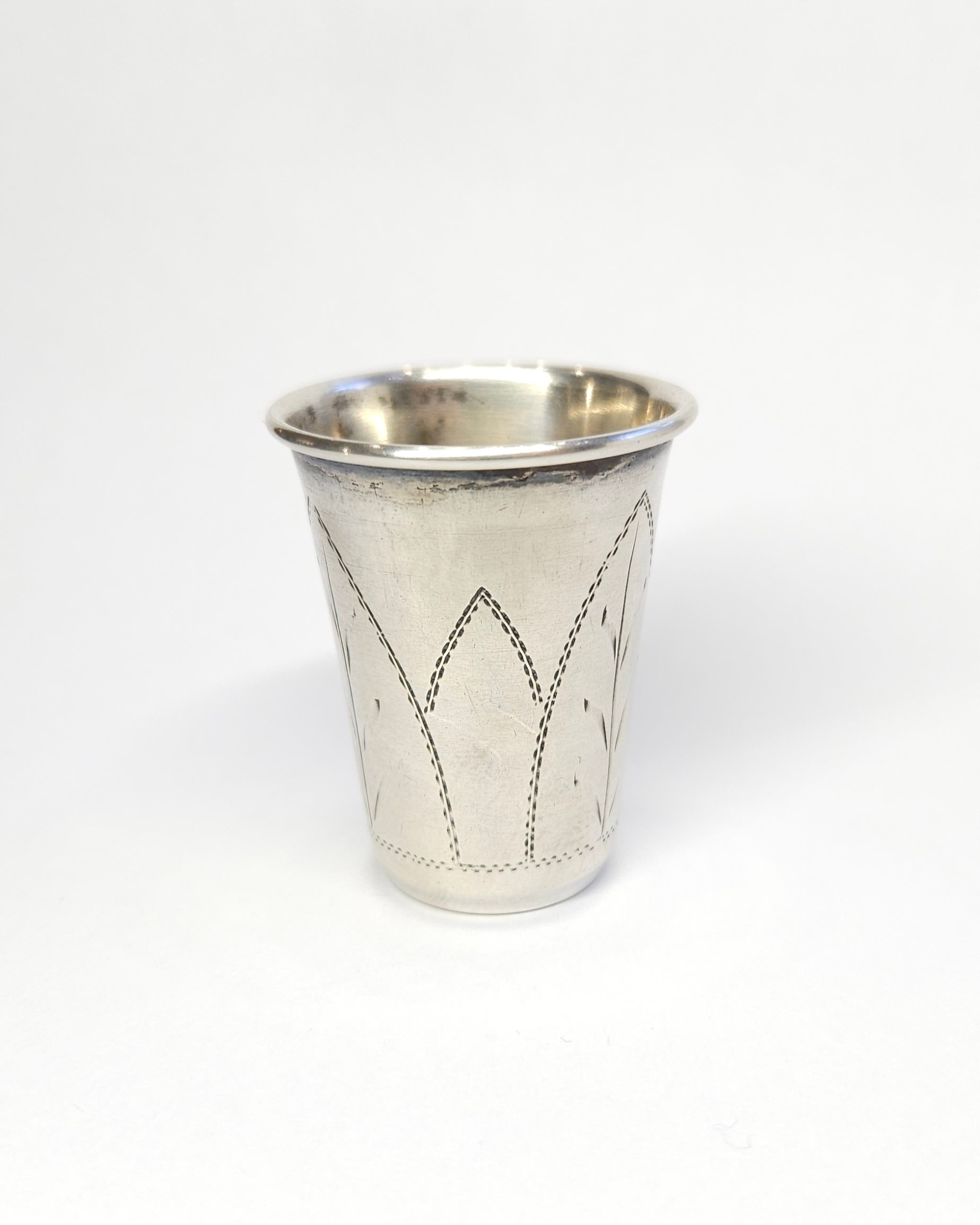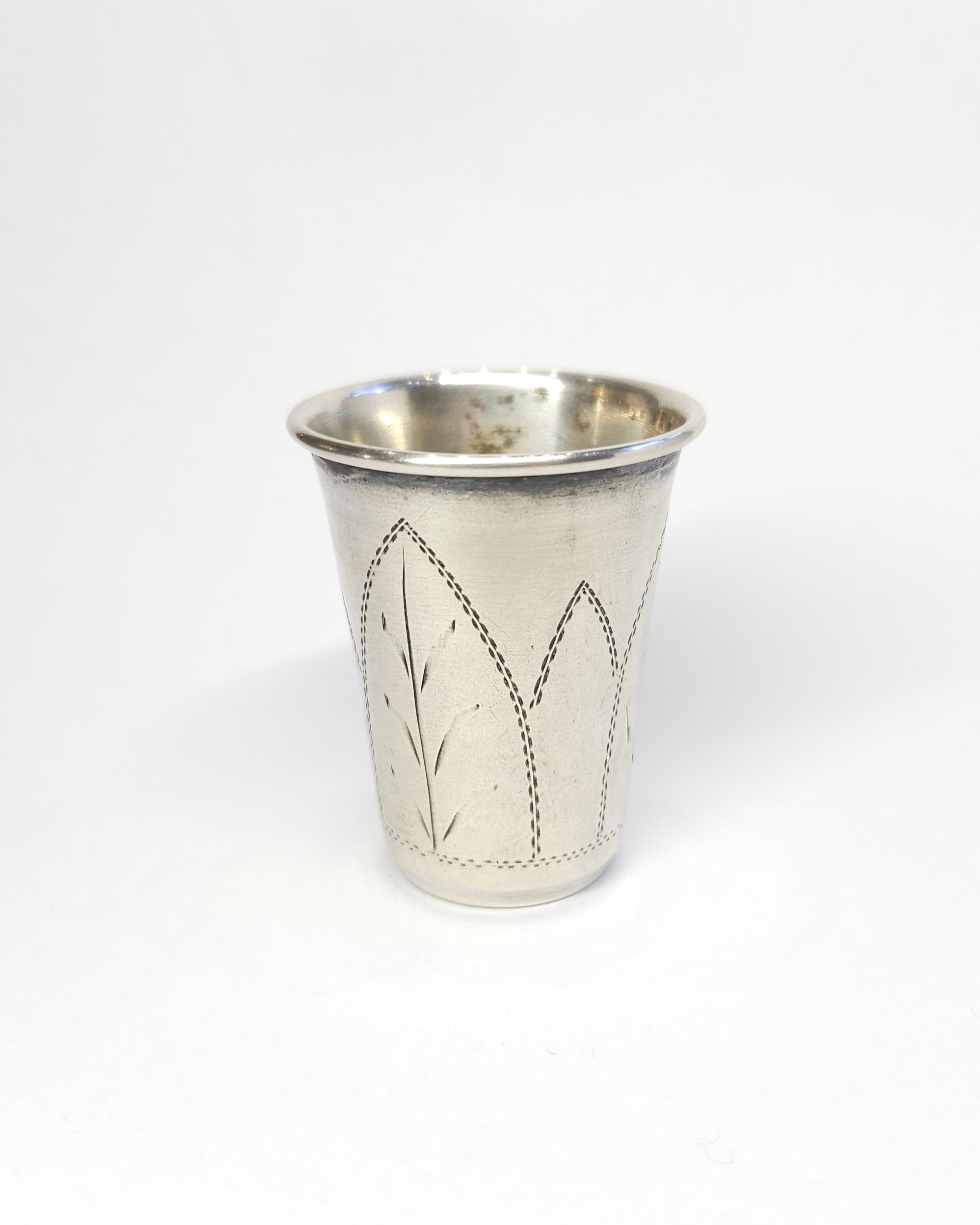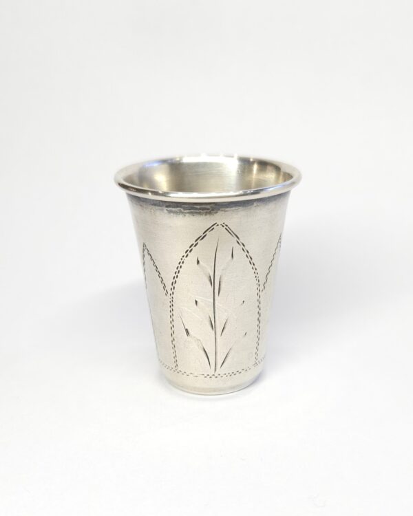 Srebrny kieliszek… może służyć jako wykałacznik, z ręcznie grawerowaną powierzchnią; pocz. XX w.