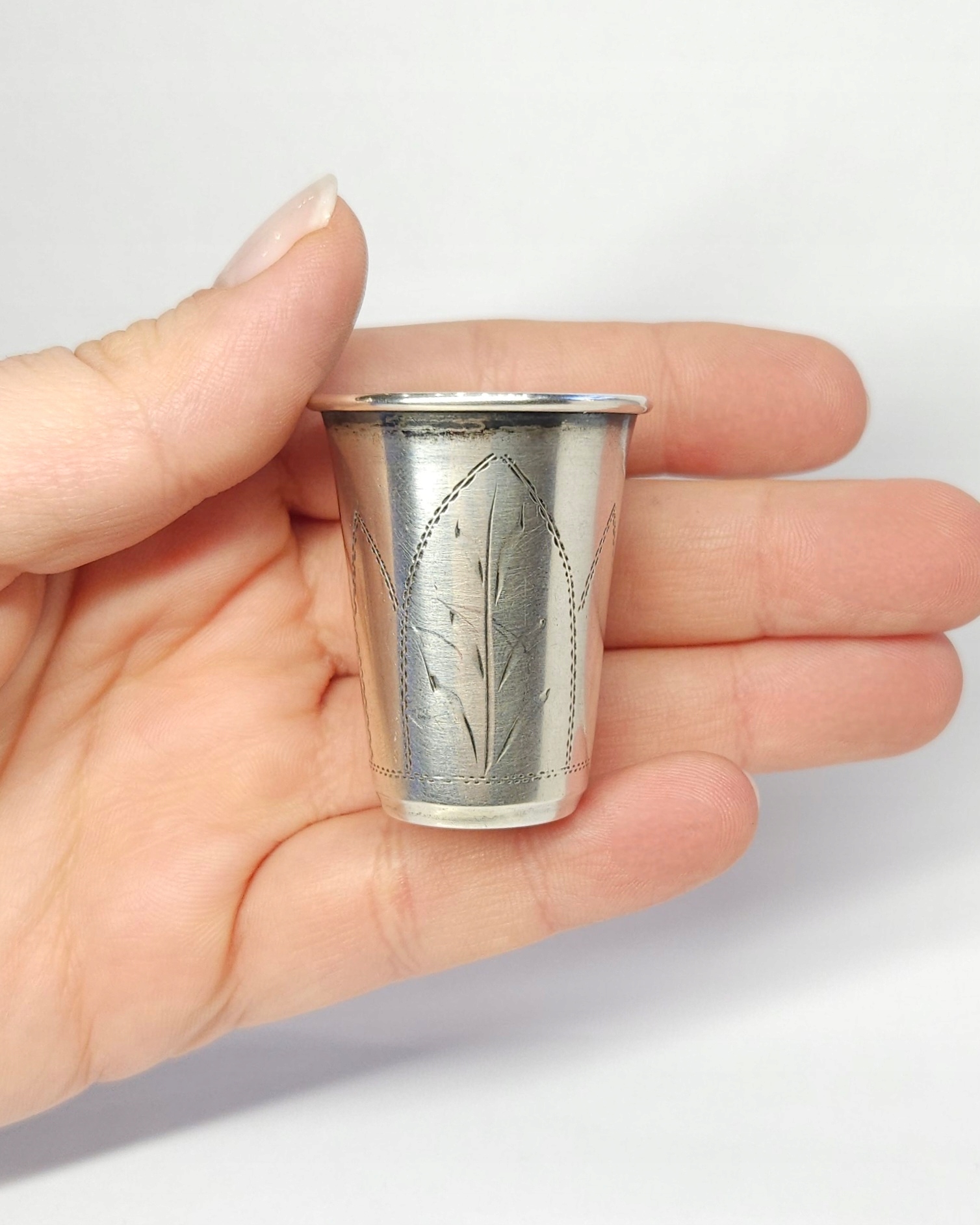 Srebrny kieliszek ręcznie grawerowany, srebro pr. 3