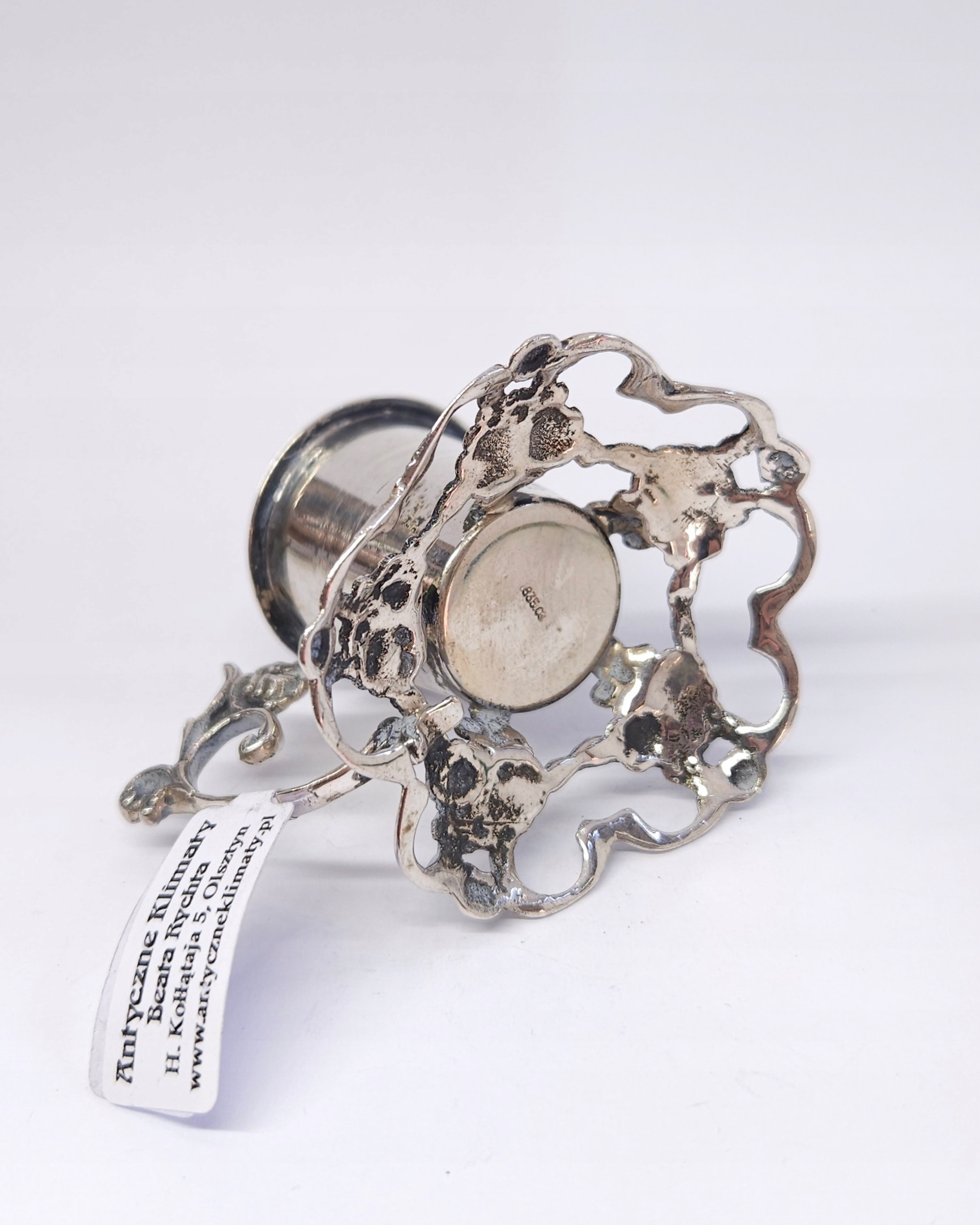 Strona główna » Sklep » Srebrny świecznik z motywem róży, srebro pr. 0,835 ażurowa podstawa I