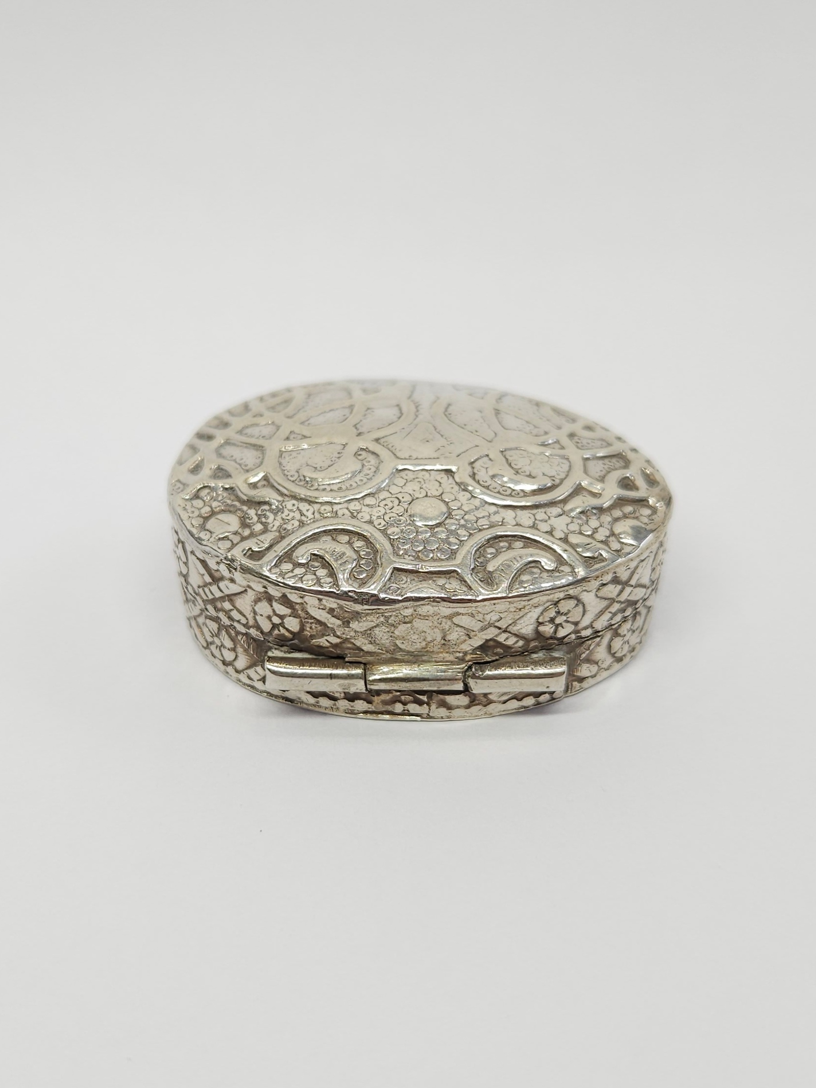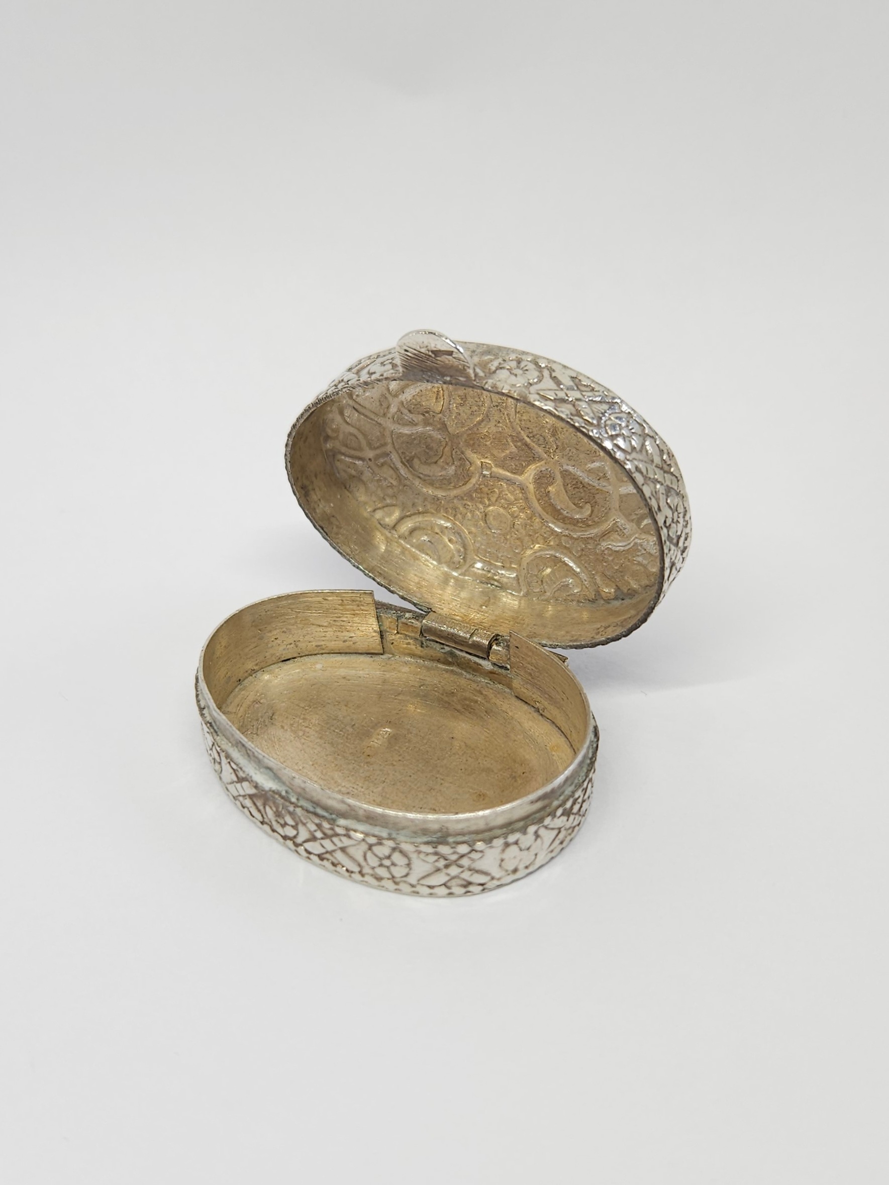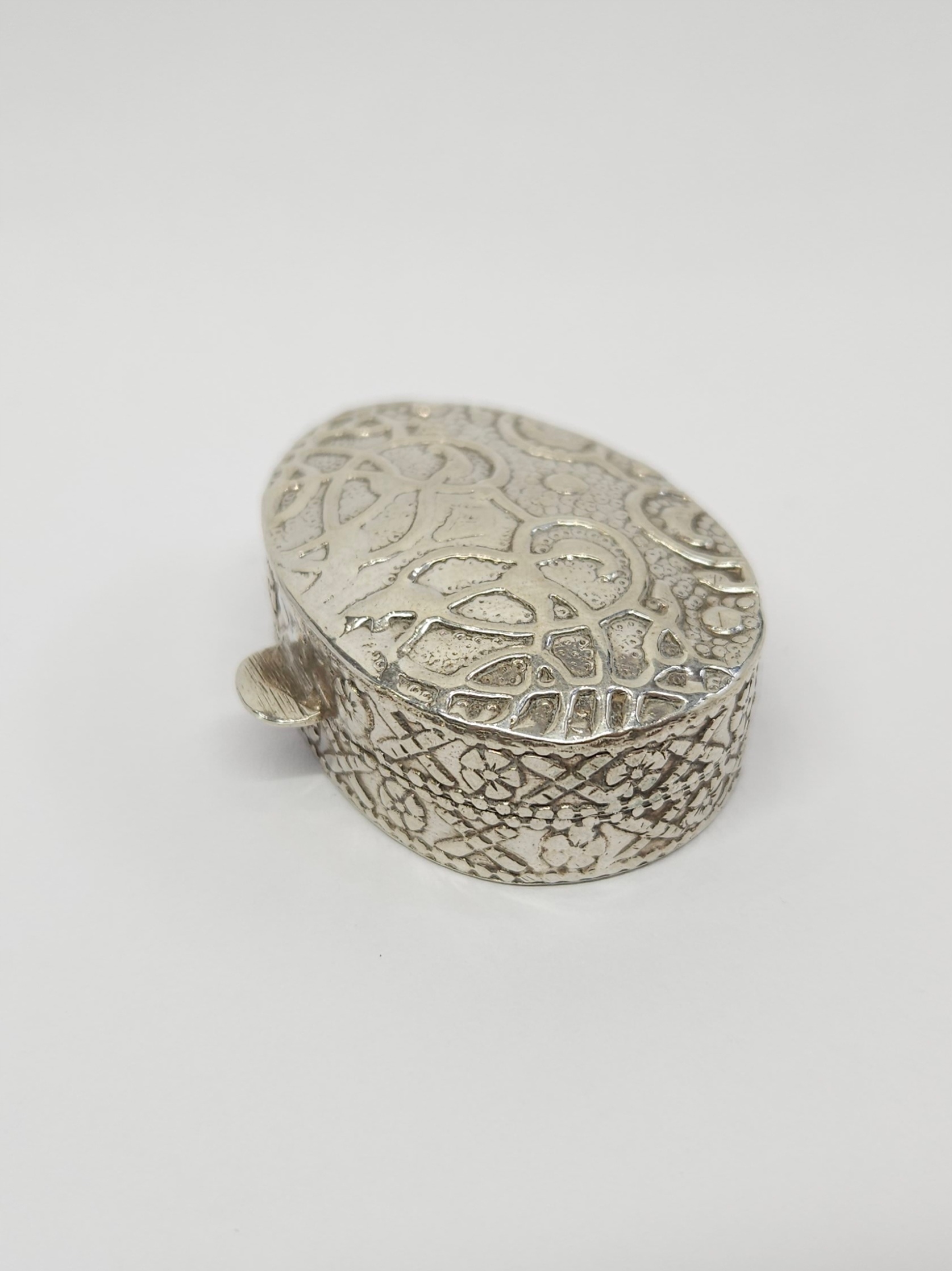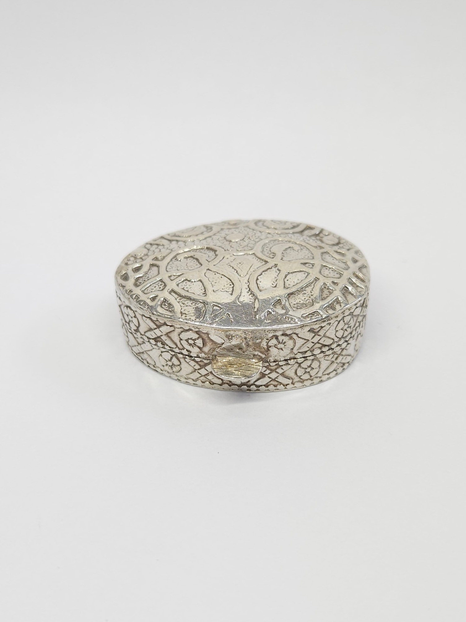 Strona główna » Sklep » Srebrne puzderko, owalny zdobiony pigularz, srebro pr. 0,800