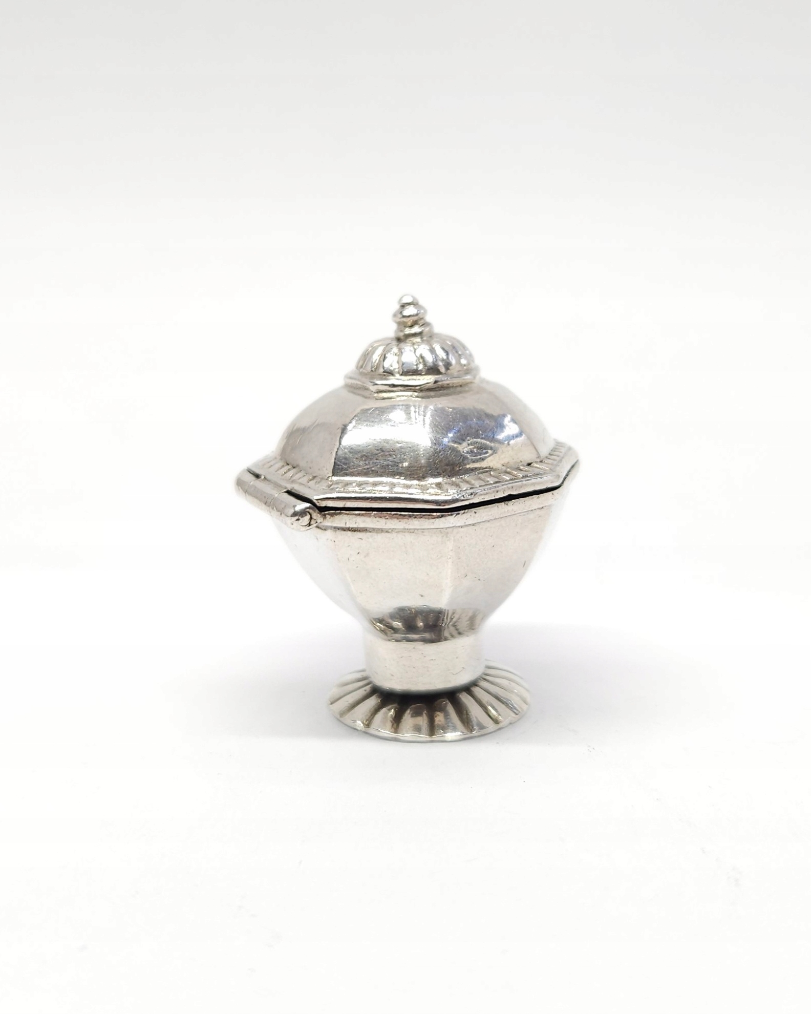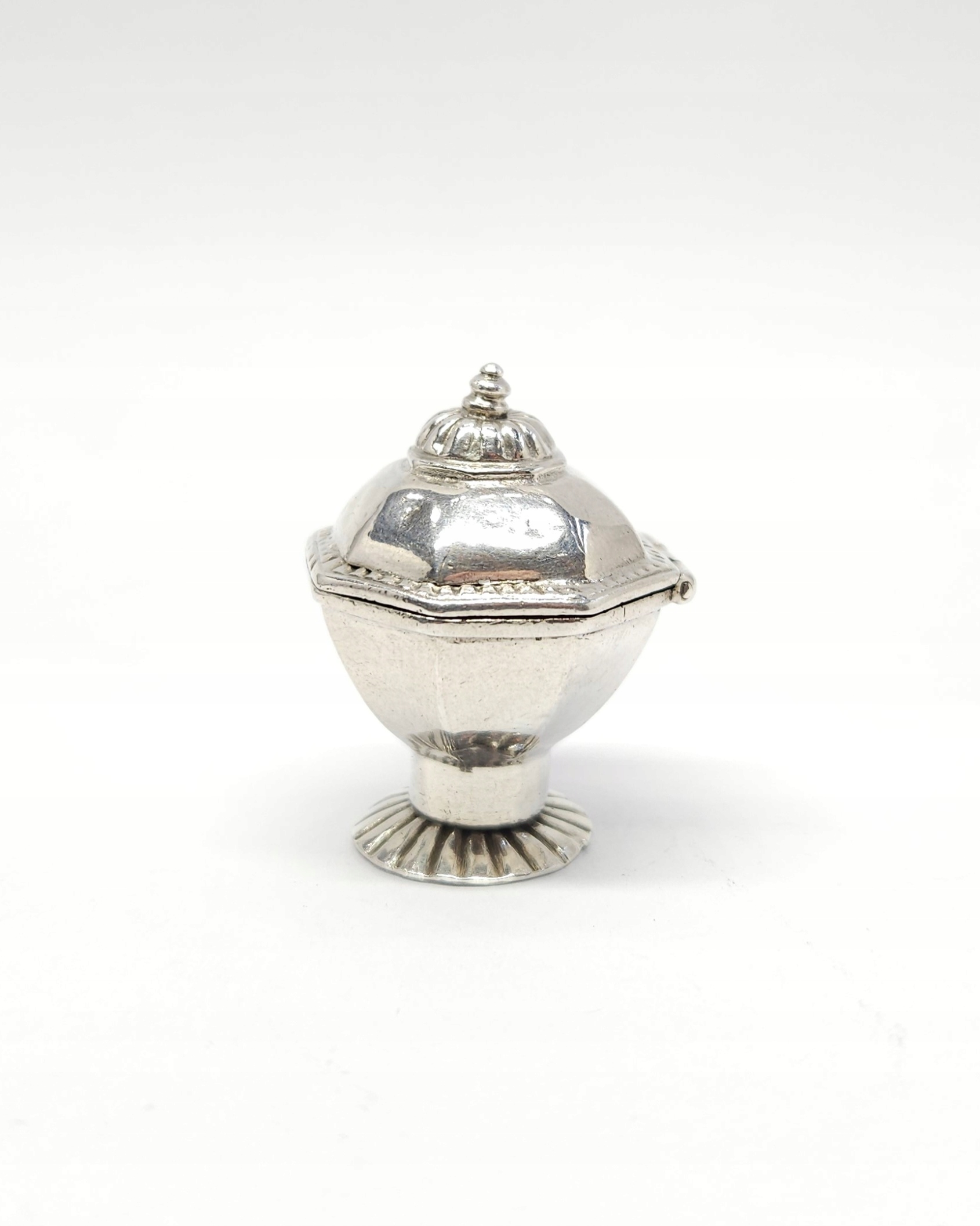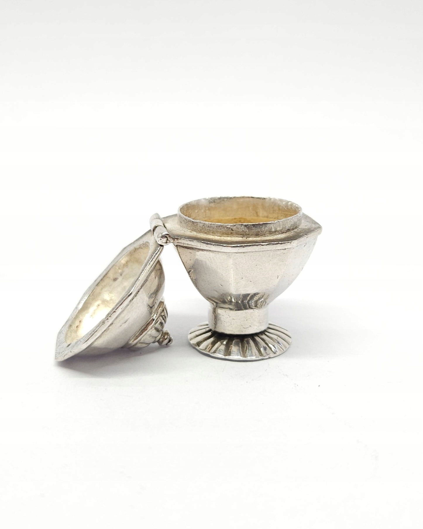 Strona główna » Sklep » Srebrny pigularz, puzderko, przyprawnik, pojemnik srebro 0,800 na nóżce II