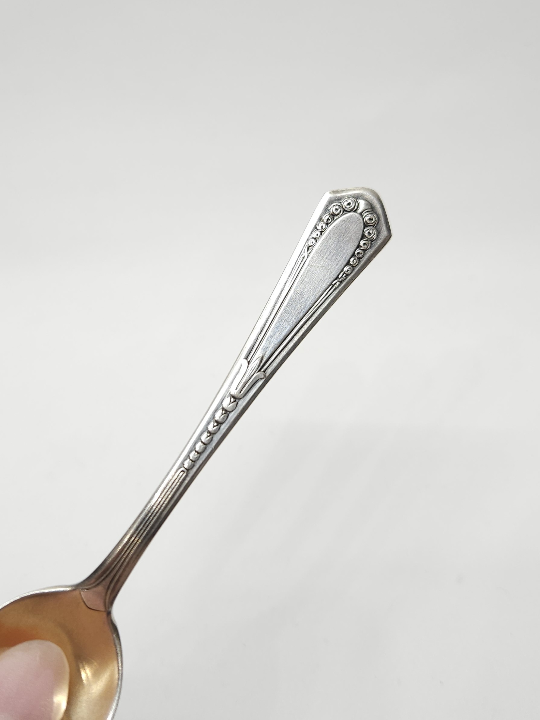 Komplet 6 szt., posrebrzanych łyżeczek z pozłacanymi czerpakami i uchwytami zdobionymi motywem drobnych róż, WMF; z racji wieku możliwe mikroryski