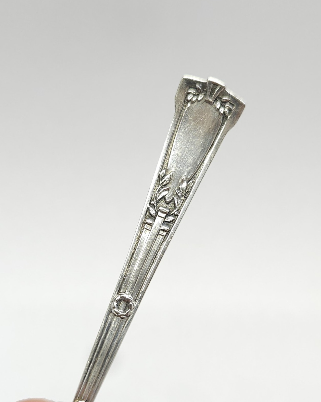 Srebrna łyżeczka z dwustronnie zdobionym uchwytem w stylu empire